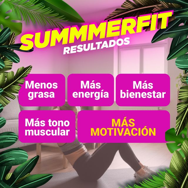 SUMMERFIT es un programa de entrenamiento de 12 semanas diseñado para ponerte en movimiento con clases cortas, intensas y totalmente efectivas, ideal para quienes quieren resultados reales sin pasar horas en el gimnasio